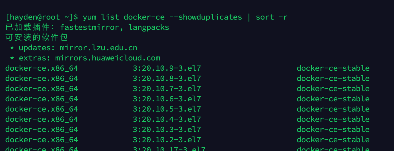 docker-ce.x86_64 18.06.1.ce-3.el7 docker-ce-stable