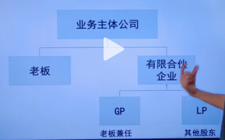 通过有限合伙企业作为有限公司的股东,有限合伙企业下设有 GP 和 LP,GP 由老板(创始人)担任,LP 由投资人(股东)担任。这样 LP 对有限合伙企业有分红收益权,没有决策权和控制权,让 GP 兼任执行事务合伙人,这样就可以让老板拿到了整个有限合伙企业的控制权,再加上老板担任的有限公司自然人股东的股权,则拿到了整个公司架构的全部控制权。