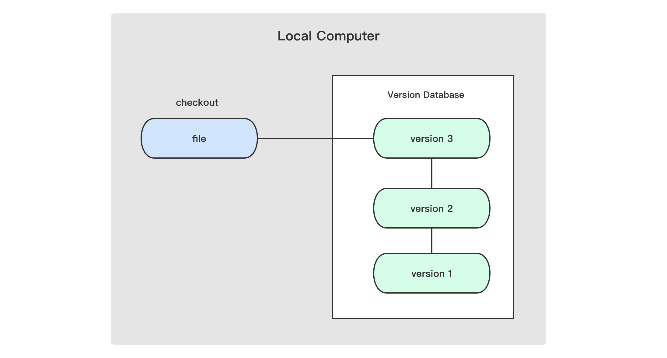 人们把项目拷贝到本地磁盘上进行备份, 然后以命名方式来区分,这种做法好处是简单,但坏处也不少比如备份比较多或许就会混淆不同版本之间的区别, 那为了解决这个问题,有人就开发了一个本地版本的管理系统,它的结构图如下: