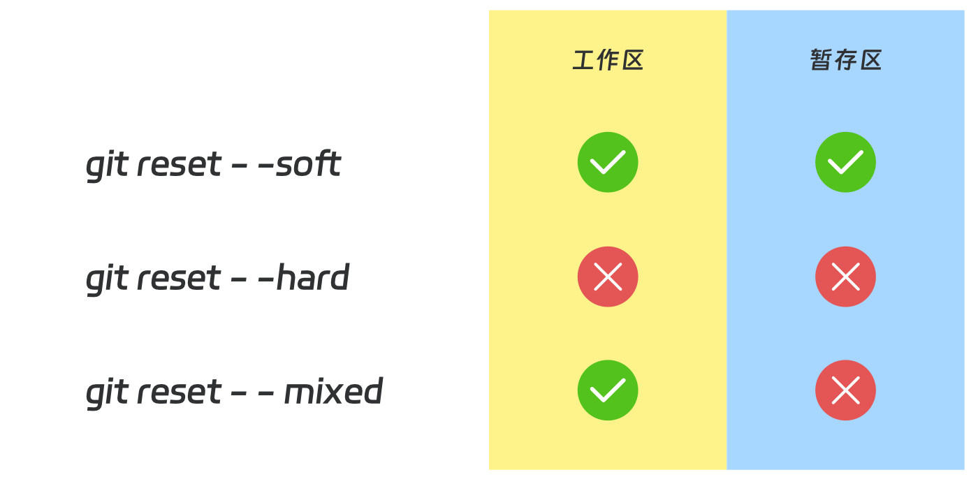 - --soft:仅仅在本地库移动 HEAD 指针,不会修改暂存区和工作区