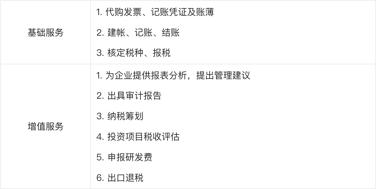 掌握代理记账公司的服务类型