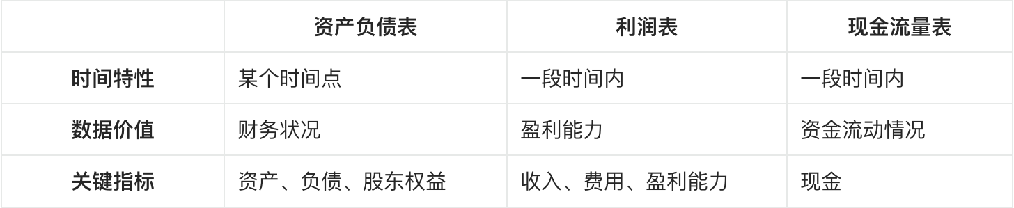 - 现⾦流量表是对资产负债表、利润表反映企业价值时过分注重净资产、净利润的校正;