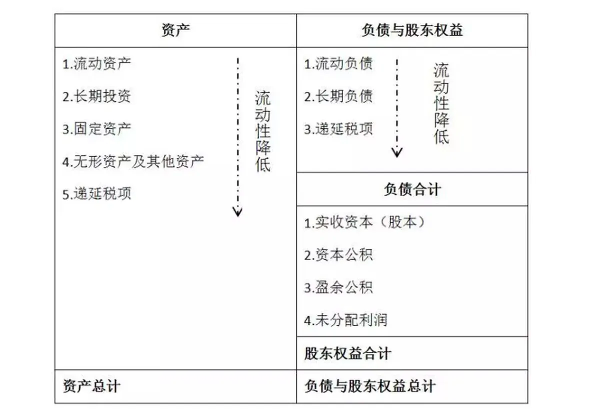 - 资产与负债均按照"流动性强弱"排列,流动性反映的是资产的变现能⼒;资产的流动性越强,资产质量也相对越⾼,但两个概念不能等价;