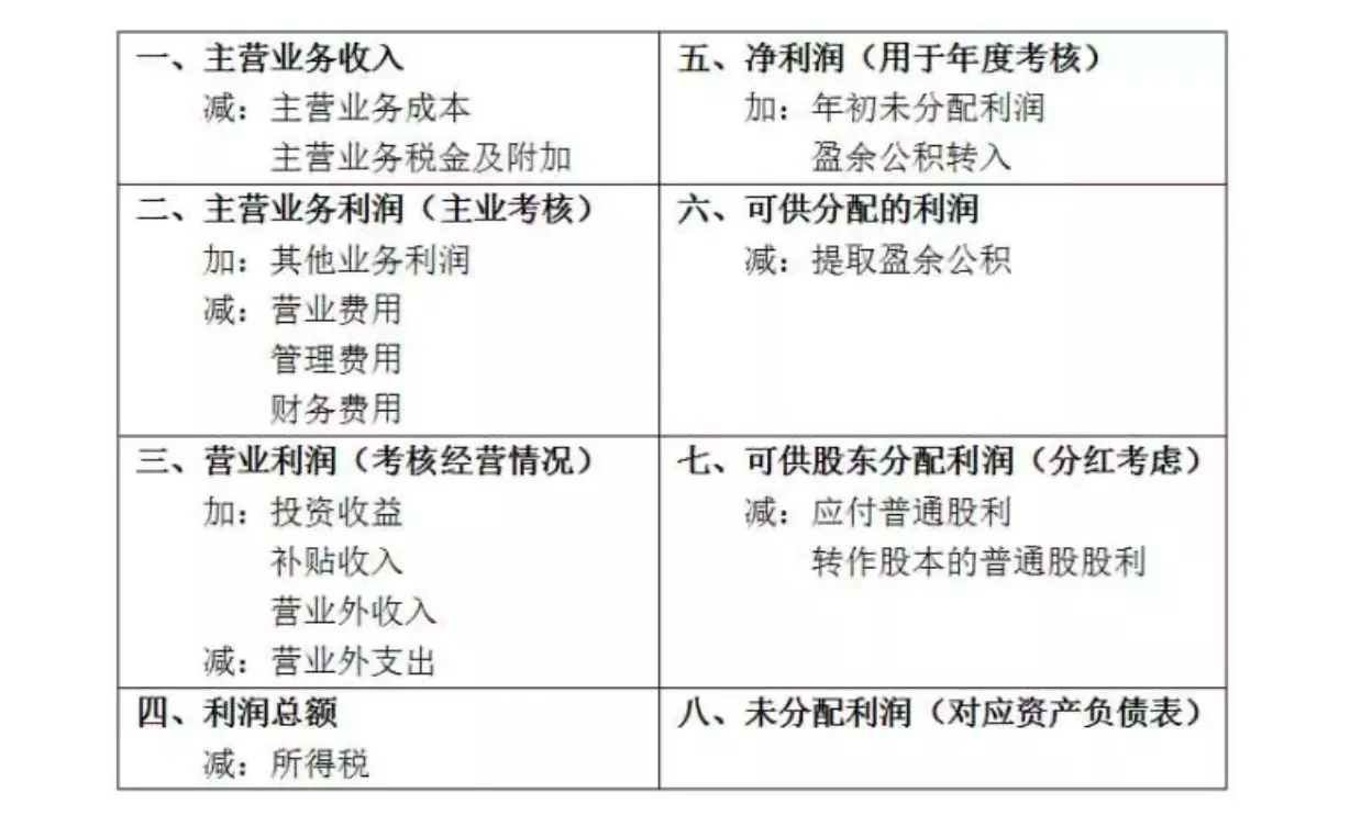 在某个时间段内,公司赚了多少钱(收⼊),花了多少钱(费⽤),经营成果如何(利润或损失),即:收⼊-费⽤= 利润(损失),反映公司在给定时间段内的经营成果。利润表主要包含以下 8 项: