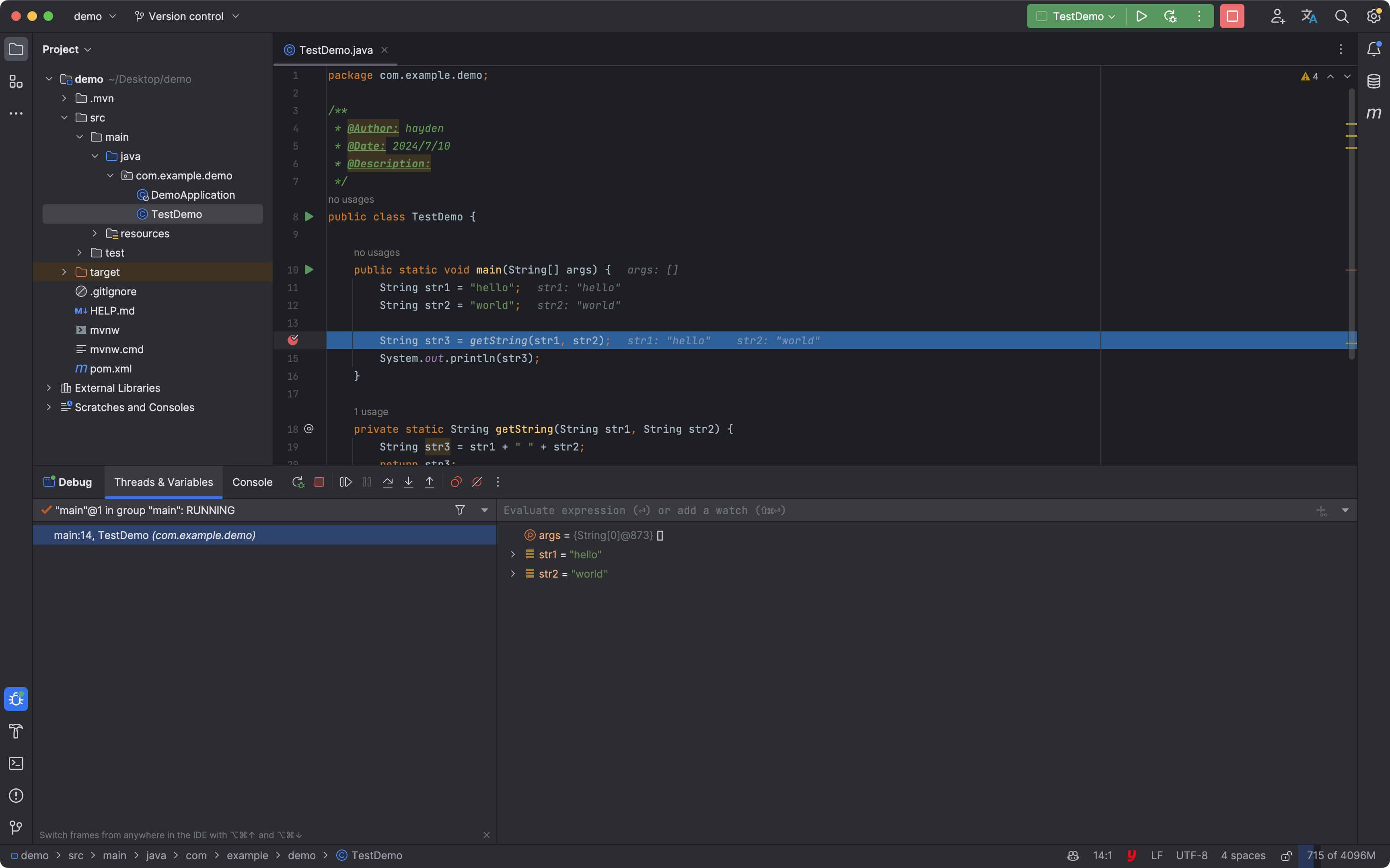 在进行 Debug 调试时,IntelliJ IDEA 会在代码的行末显示出已经计算出来的表达式值。