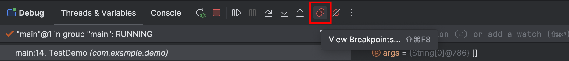 - 按钮“View Breakpoints”用于查看程序中所有的断点。