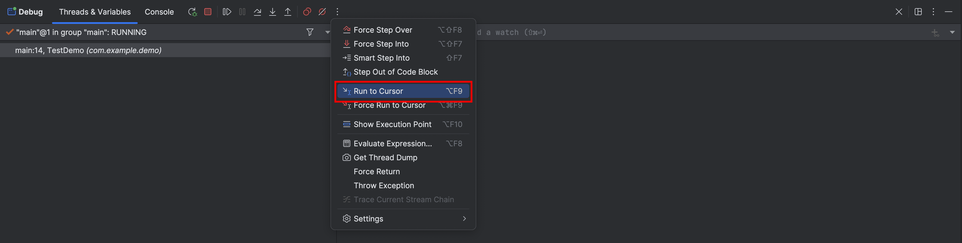- Run to Cursor(运行至光标)