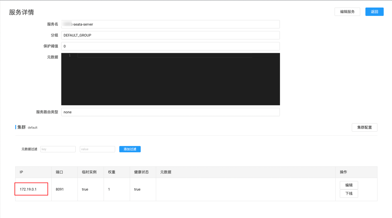在查看 Nacos 的服务列表信息中发现,Seata 服务端的 IP 与其他服务不在同一网段,而是处于 Docker 容器内部的网络中。