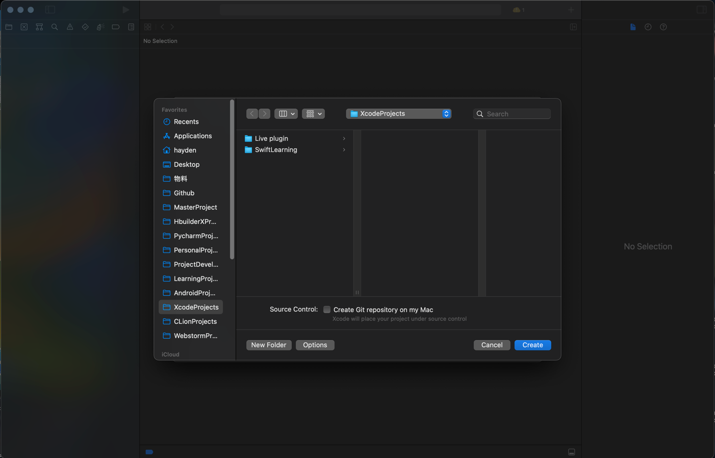 因为在创建项目时没有勾选 Create Git repository on my Mac,所以这边需要手动创建本地仓库,并添加远端仓库地址
