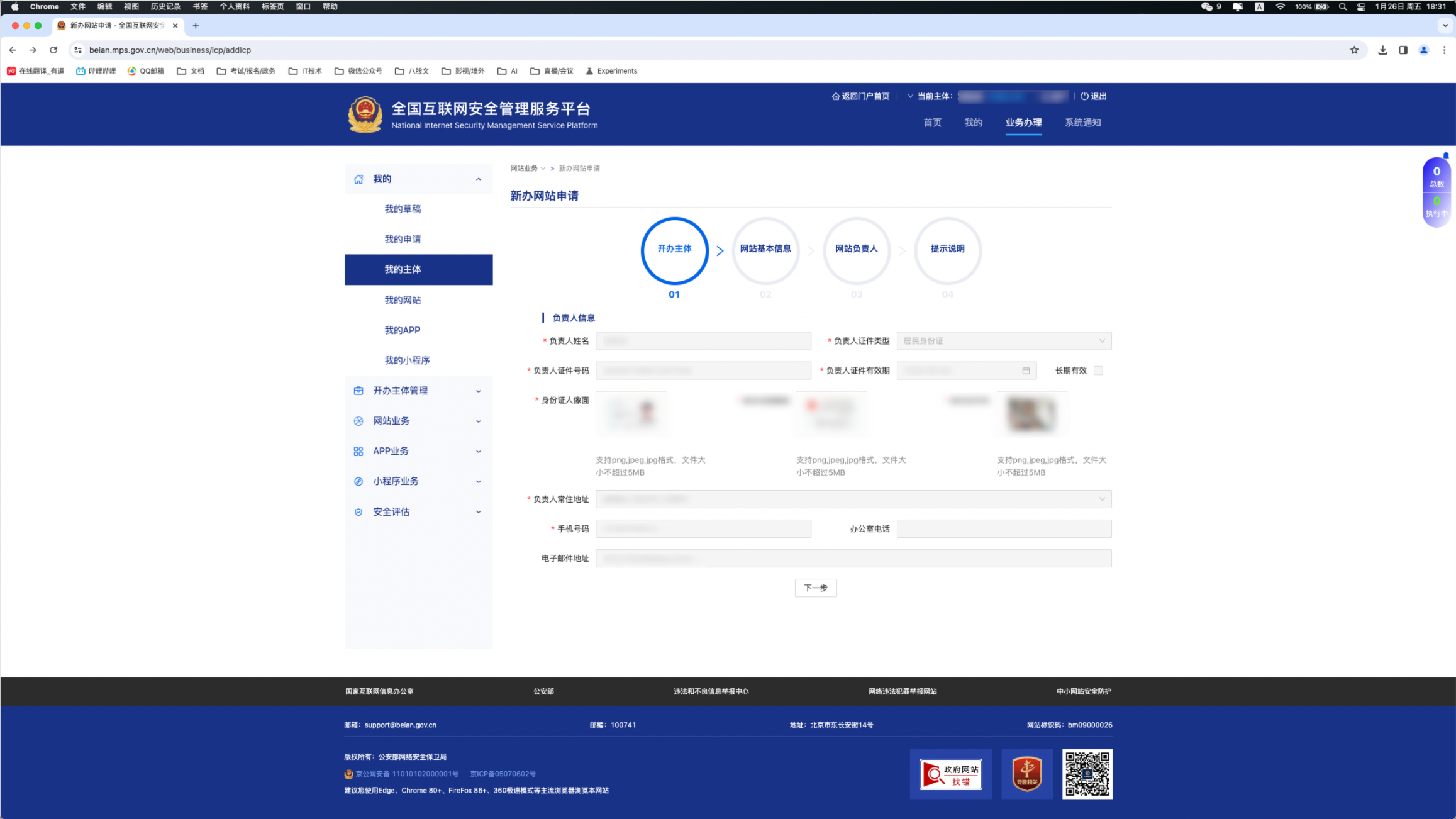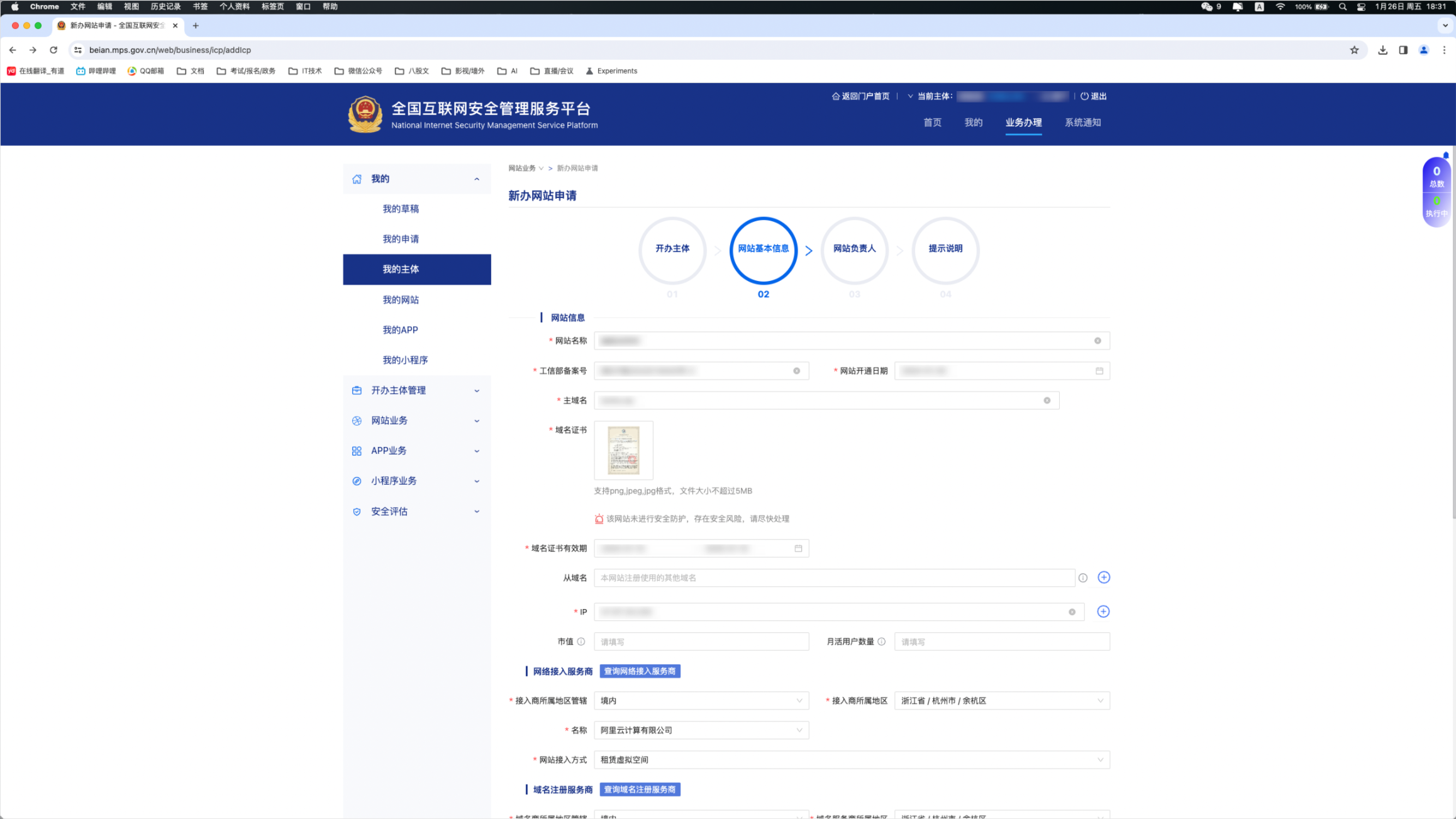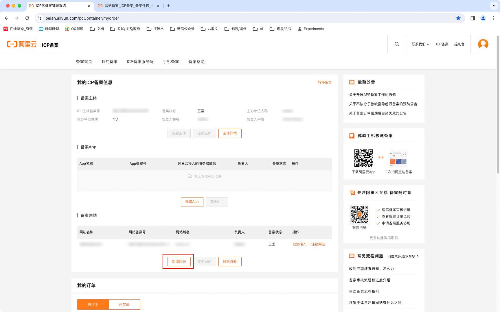 笔者已经有一个备案的网站了,这边再新建一个网站备案: