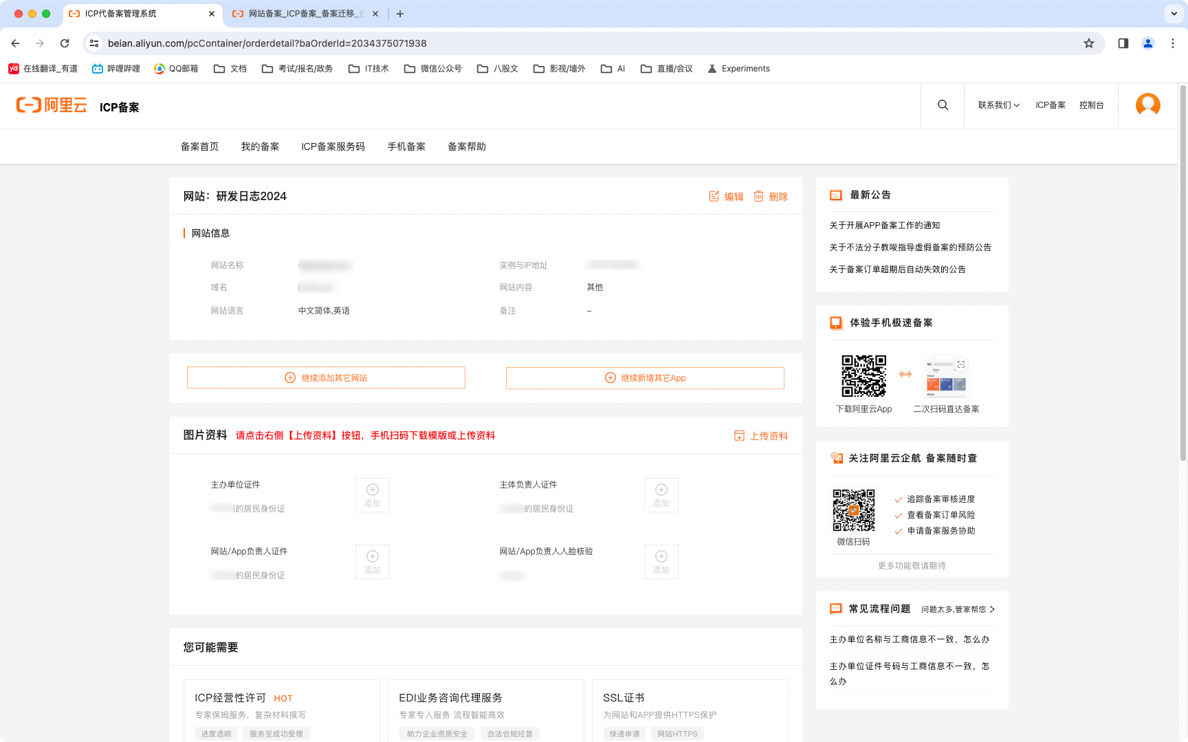 网站备案时,需在阿里云 App 端上传主体负责人证件、网站负责人证件、主办单位证件等必须上传的基本资料,辅助资料需根据您的 ICP 备案场景和管局规则选择性的上传。